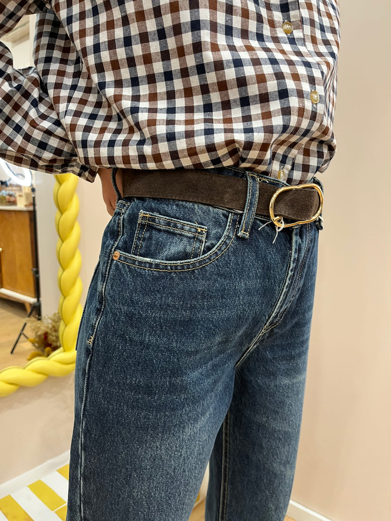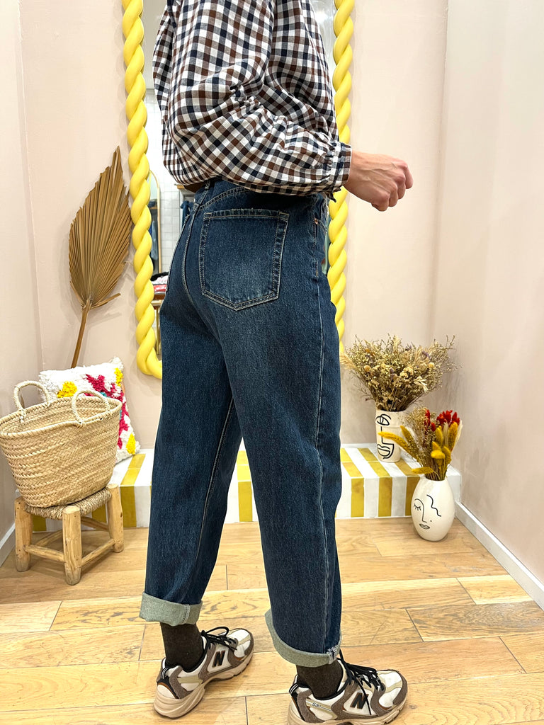 Jean boy taille haute bleu foncée