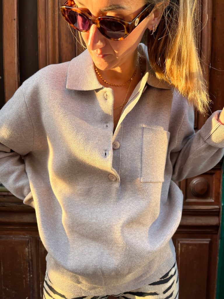 Polo manche longue taupe