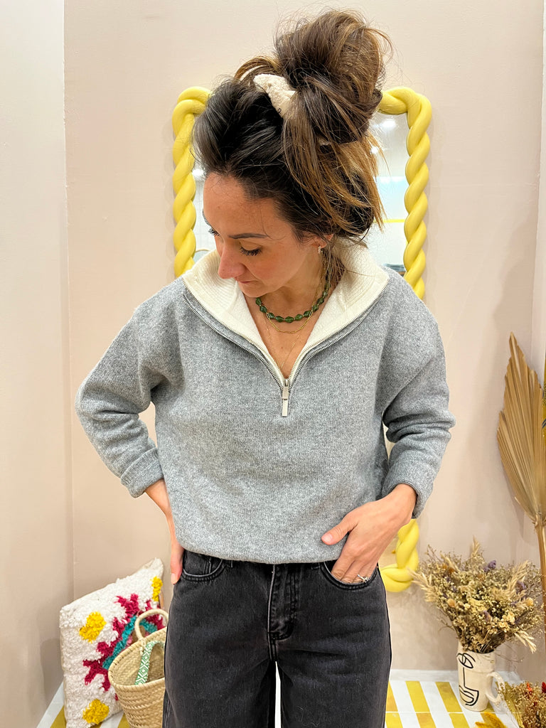 - Double col zippé gris et écru