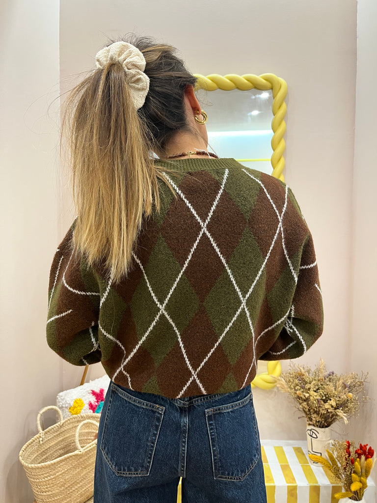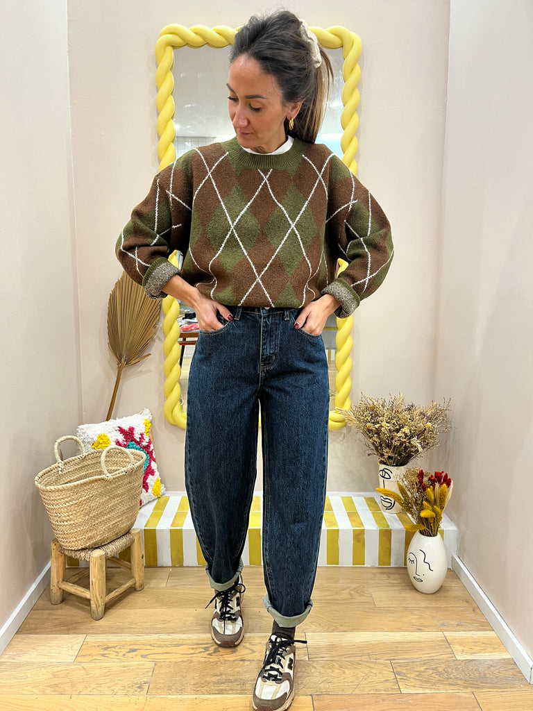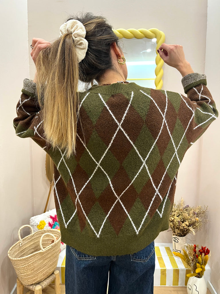Pull en maille olive/ marron