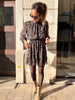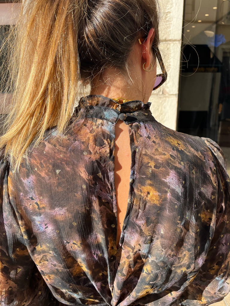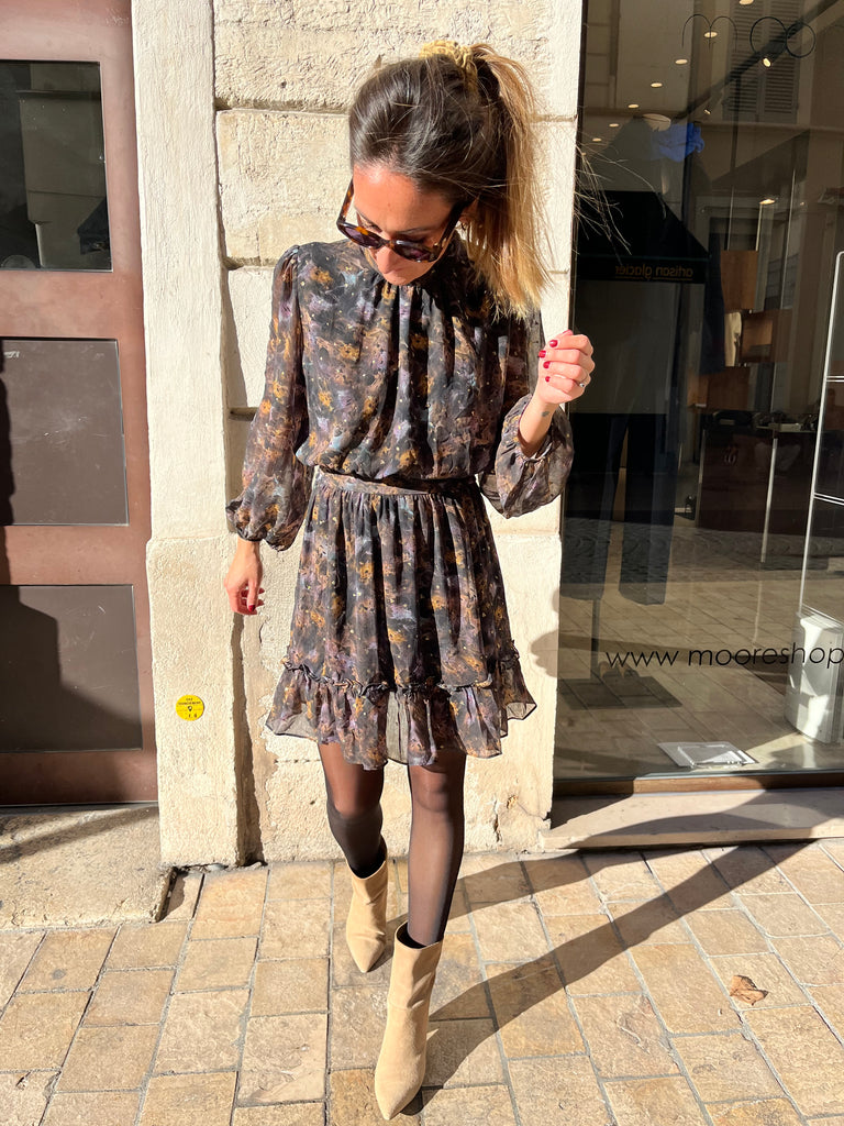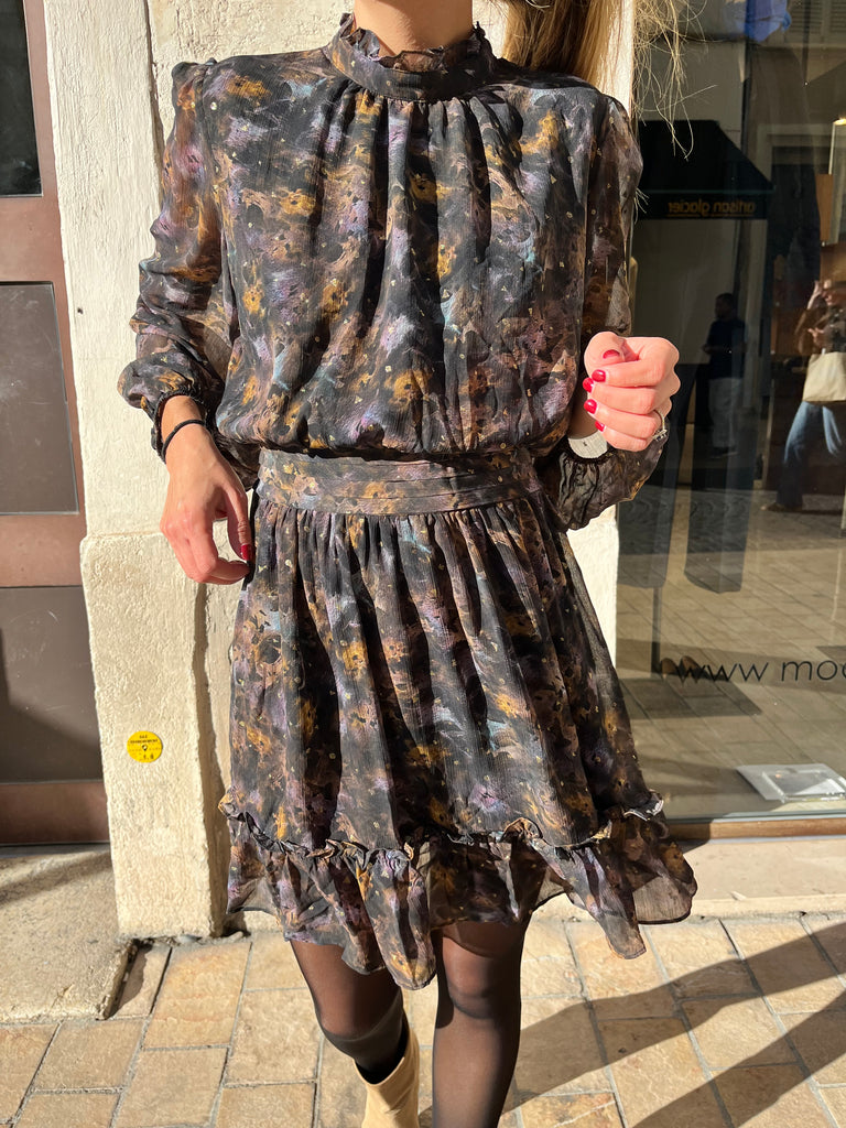 - Robe courte à motifs aux détails dorés