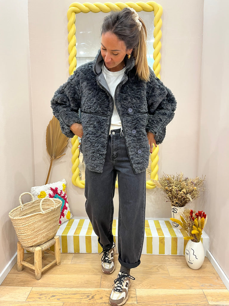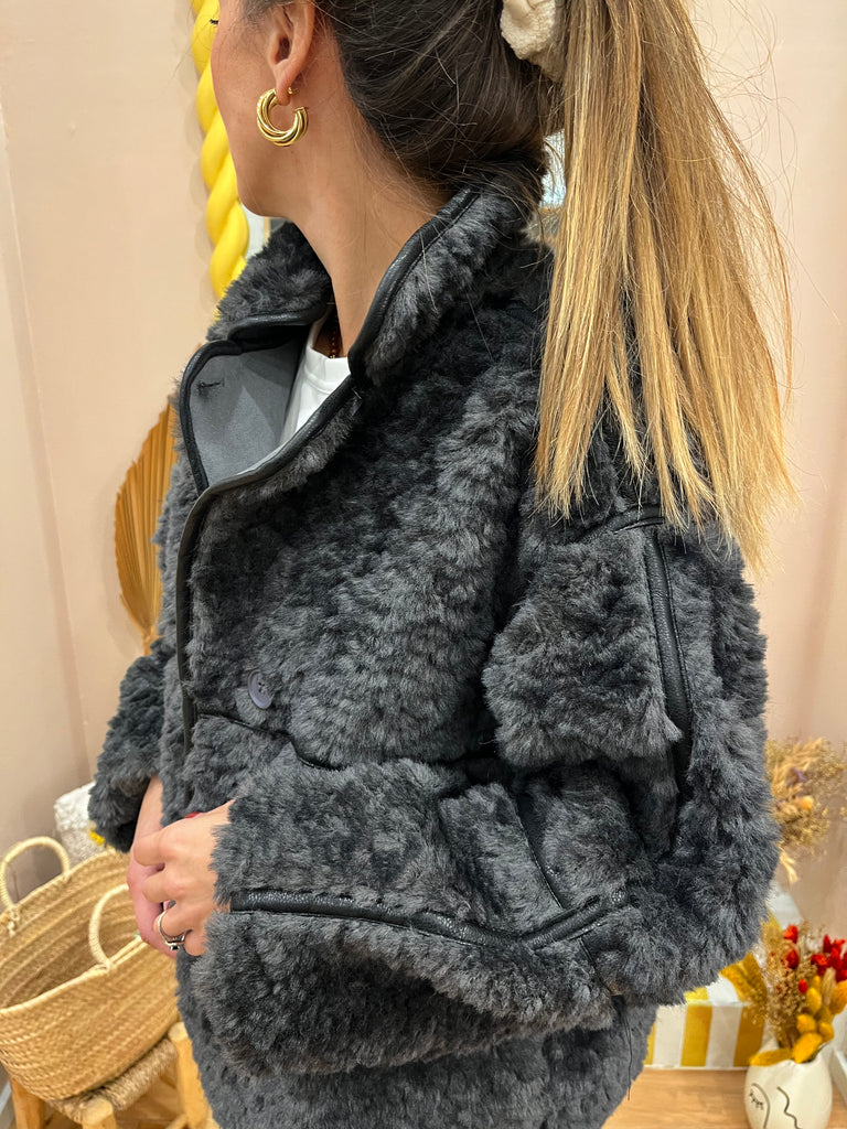 - Manteau moumoute gris